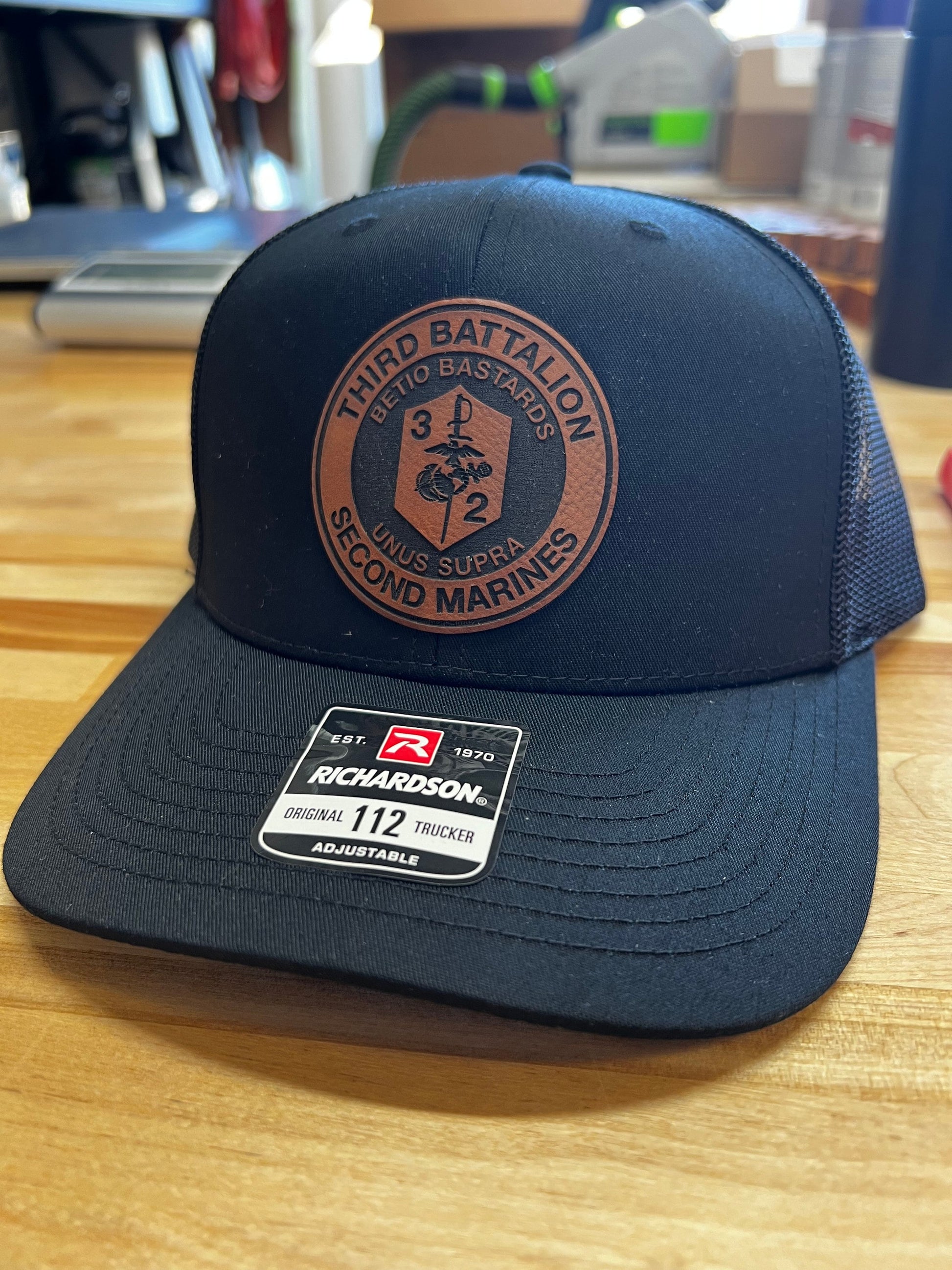 USMC 3rd Battalion 2nd Marines Leather Hat Patch Richardson Hat